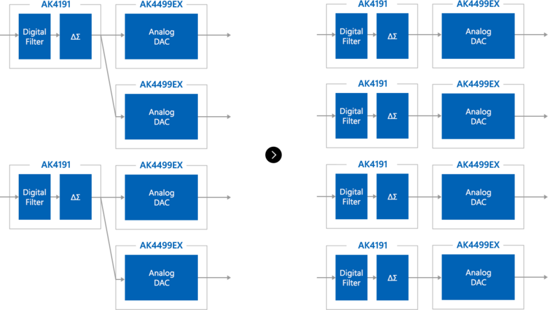 | DAC | AKM4191 x4 + AKM4499EX x4 (Real Quad DAC) |